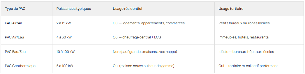 Les principales familles de climatisation & PAC